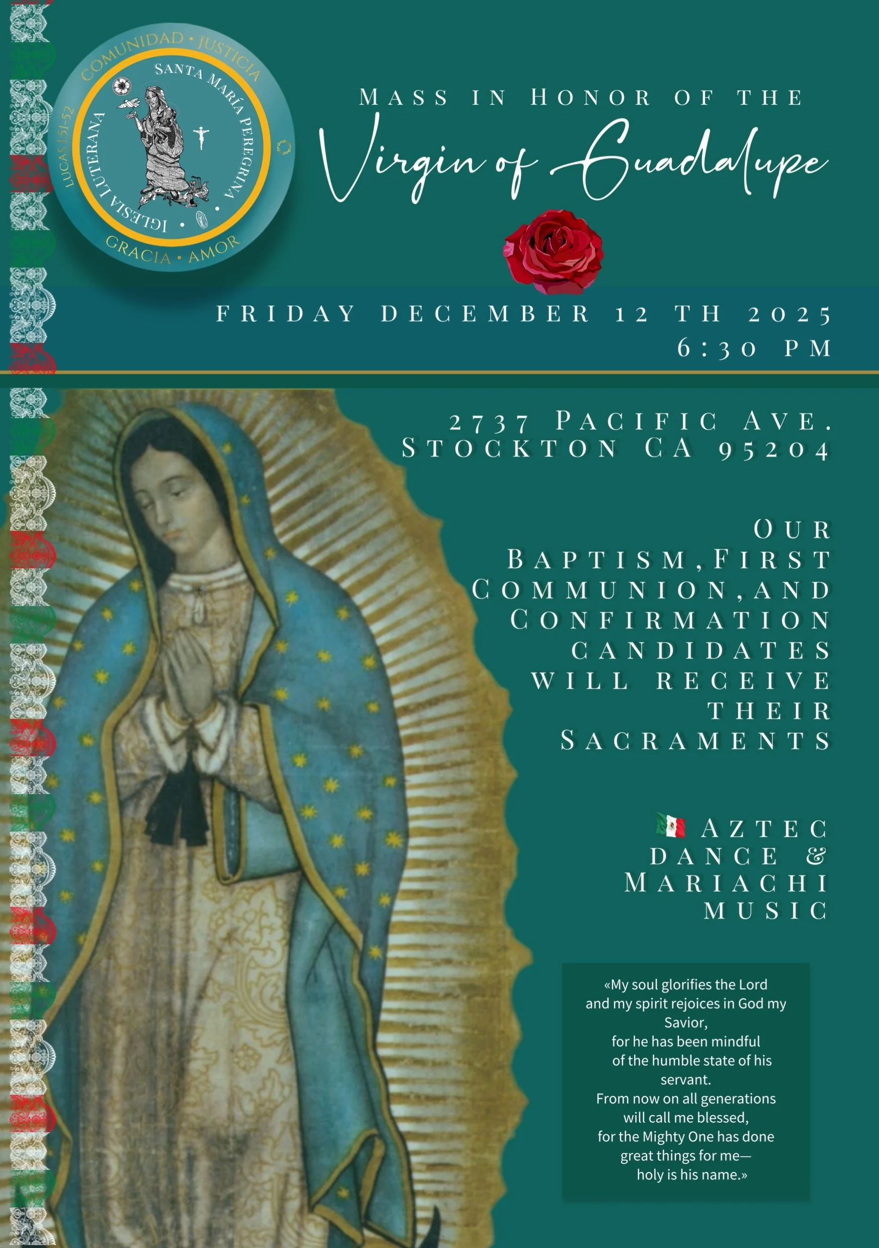 Join Iglesia Luterana Santa MarΓa Peregrina as they celebrate the Feast of Our Lady of Guadalupe, a night filled with grace and love.